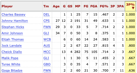 Let’s say you want someone from the G-League to come in and simply fill the role of a 3PT shooter. Who’s the best 3PT shooter in the G-League? You could simply sort G-League players by 3P%
