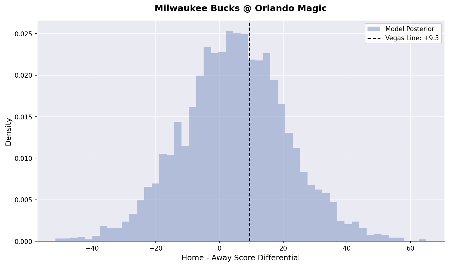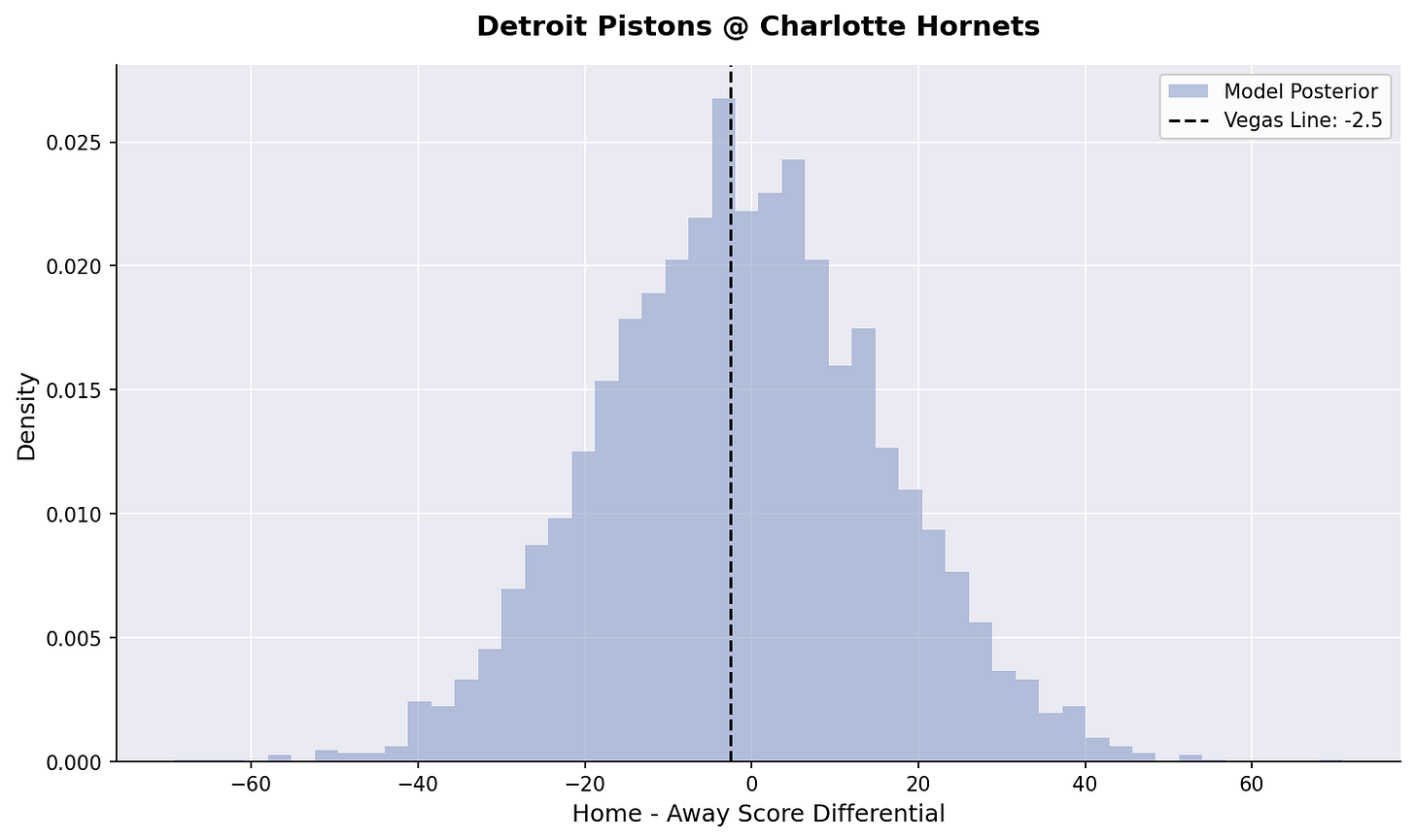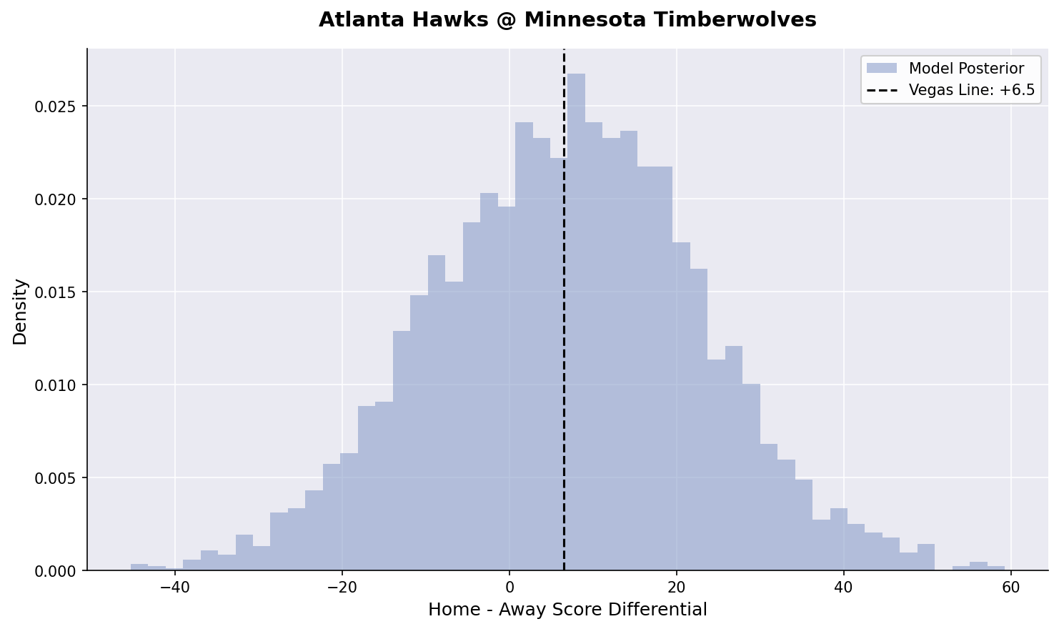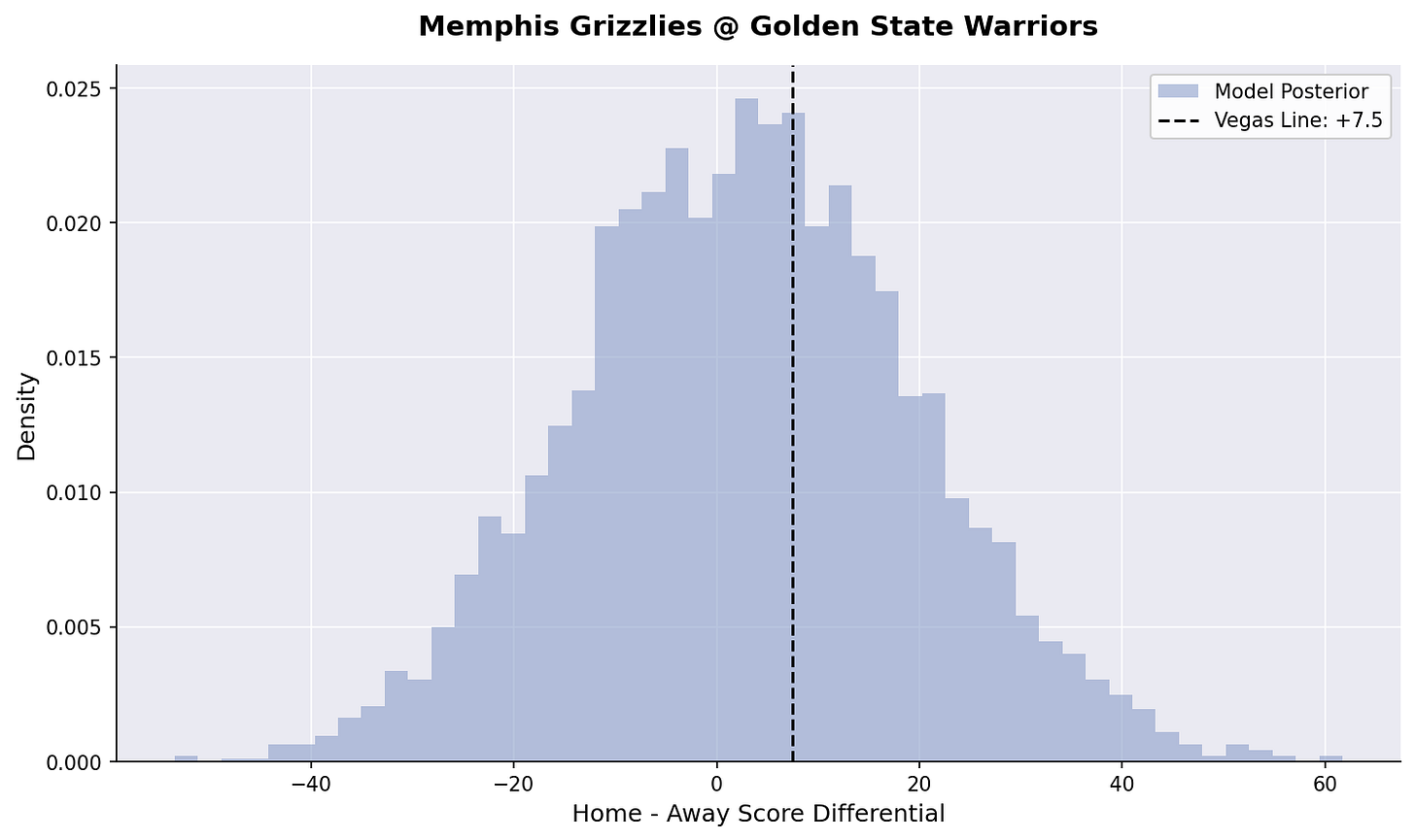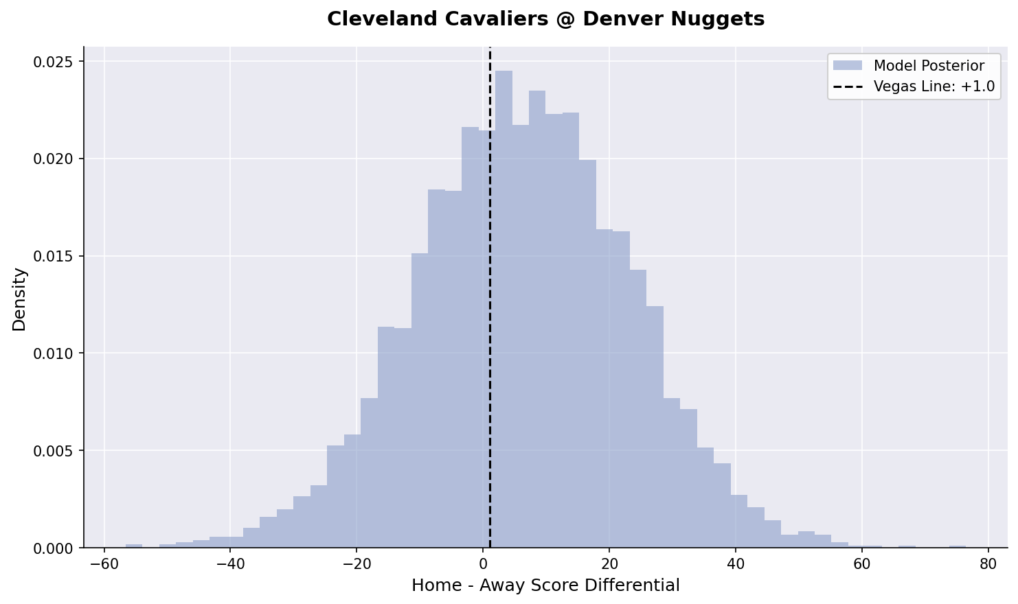 We’ve fired back up our Bayesian hierarchical models. Here is our posterior estimates for tonight’s games: