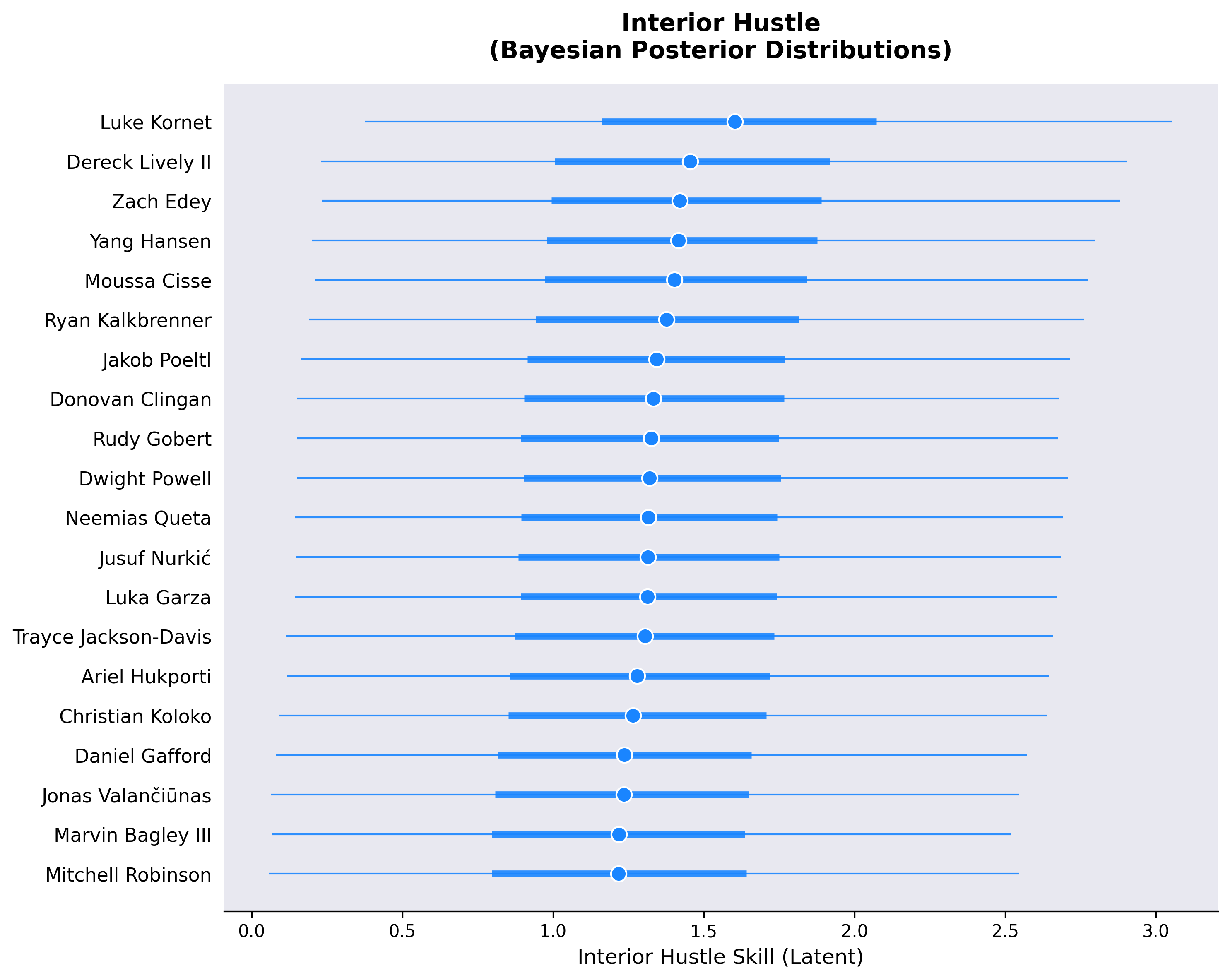 Let me know if there are any players you are particularly interested in, and I’ll highlight their posterior estimates.