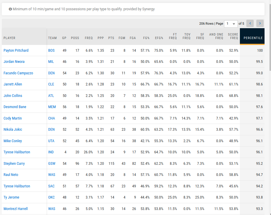If you look at who’s the highest percentile on isolation shots on NBA.com (screenshot above), it’s Payton Pritchard. Jordan Nwora comes in second. That can’t be right.